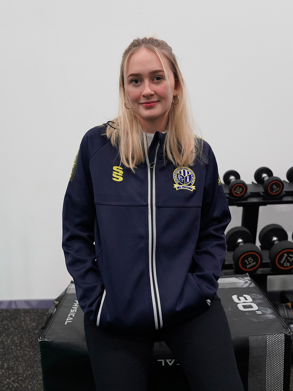 Huddersfield university sport branded navy blue zipped hoodie